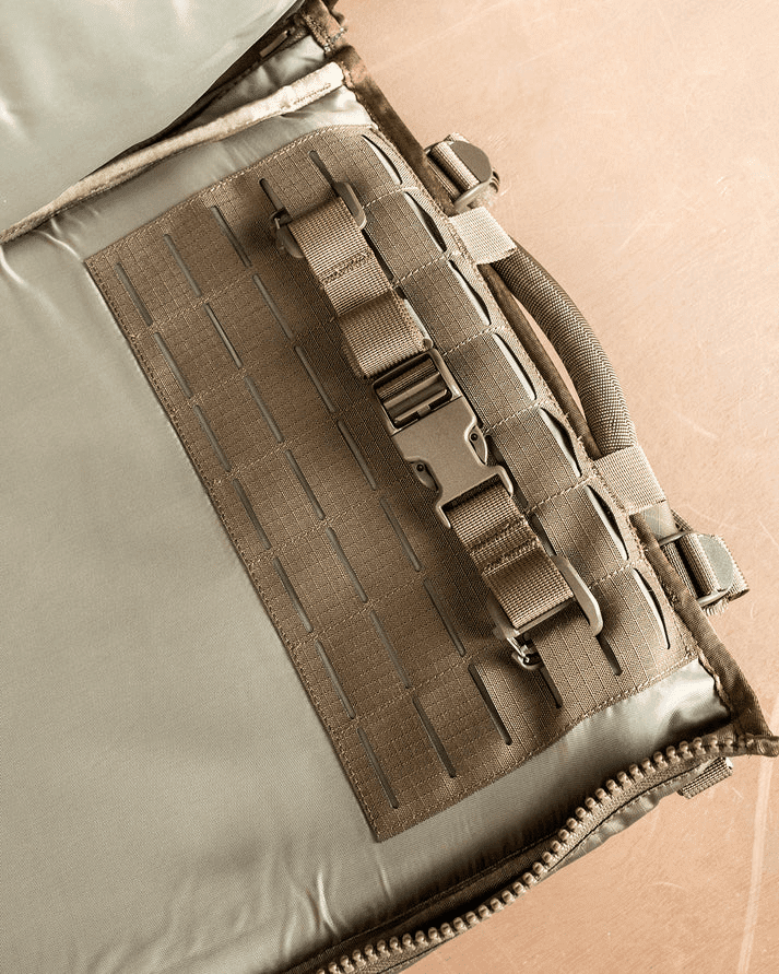 Designen bygger på direkt feedback från fältet. För maximal manöverbarhet i trånga miljöer eller vid låg crawling är ryggsäcken försedd med robusta bärhandtag på toppen, sidorna samt ett slitstarkt Hypalon-handtag på fronten. Detta gör det enkelt att snabbt ompositionera eller dra med sig utrustningen under svåra förhållanden.