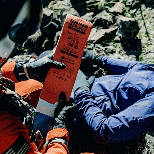 Rhino Rescue Universal Splint är en mångsidig och återanvändbar skena för immobilisering av frakturer och andra extremitetsskador. Med en kärna av tunn aluminiumlegering mellan två lager skum kombinerar den flexibilitet med stabilitet, vilket gör det enkelt att anpassa splinten efter kroppens konturer.