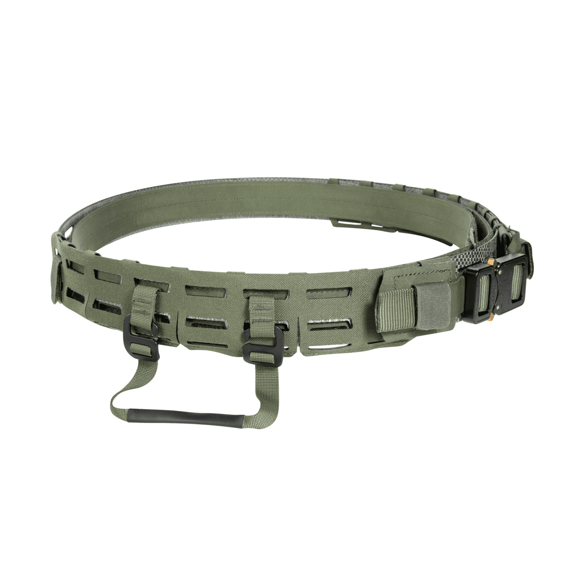 TT Battle Belt Set är ett avancerat, modulärt lastbärarsystem designat för operatörer inom Polis och Försvarsmakt som kräver minimal vikt och maximal stabilitet. Konstruktionen bygger på 12 lager av Tegris®, ett styvt och ultralätt kompositmaterial. Denna styvhet säkerställer att bältet bibehåller sin form och position, även vid asymmetriska eller tunga laster av utrustning såsom magasin, hölster och IFAK-fickor.
